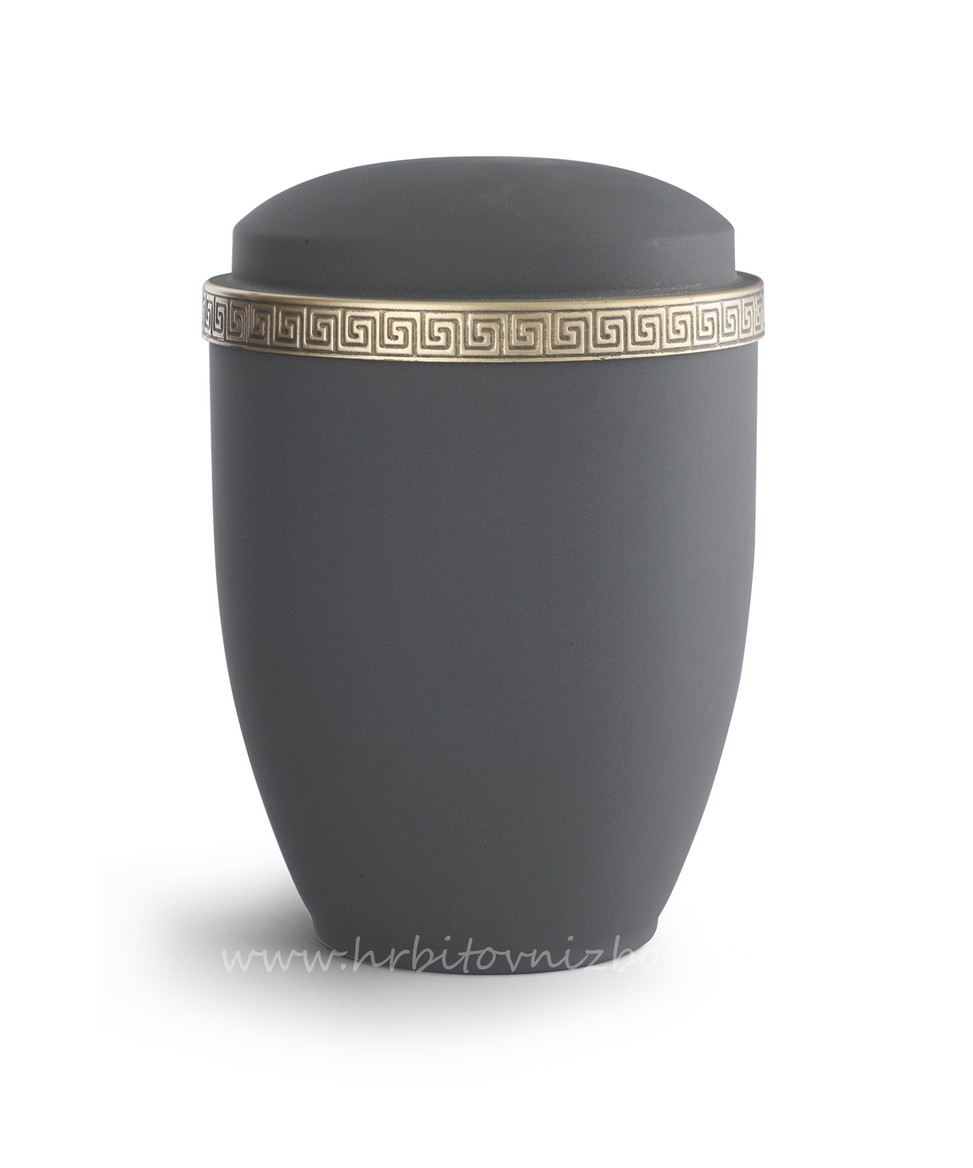 Ocelová urna černá s ozdobným zlatým pruhem na víku. Můžete si vybrat štítek z nabídky umístěné vedle ceny urny. Obrázky cedulek naleznete pod obrázkem urny. Také můžete vybírat cedulky v hlavním menu obchodu. Cedulku na urnu připevníme. Text na cedulku napíšete v nákupním koši do poznámkového okna. Pokud chcete rytou cedulku bez růže, napište to do poznámky (bez růže). Do této urny lze vložit úřední plastovou vložku s popelem, kterou vydávají krematoria.